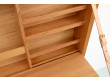 Secrétaire mural à abattant modèle Odense. Chêne massif. Sangles en cuir naturel pleine fleur, non traité. Conçu et édité par JL Studio. Entièrement fabriqué en France par des maîtres artisans. Chêne issu de forêts françaises éco-gérées durablement.